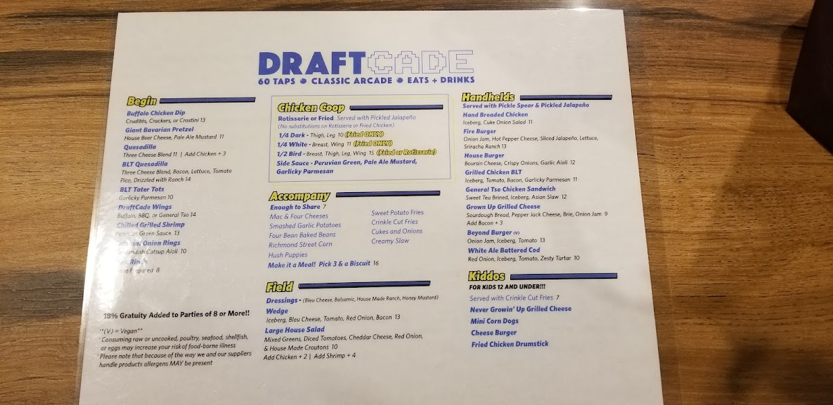 Richmond Draftcade Menu (2025 Update)
